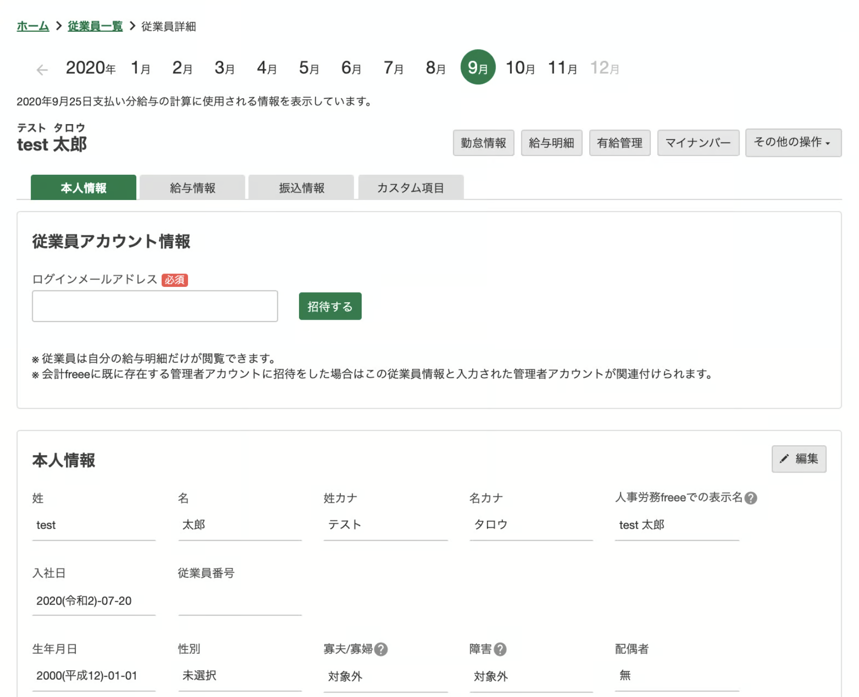 「freee人事労務で確認する」を押すとfreee人事労務の画面に遷移します。